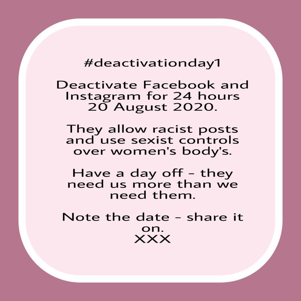 Deactivate Facebook and Instagram for 24 hours on 20 August. Let’s show them that they need us more than we need them.