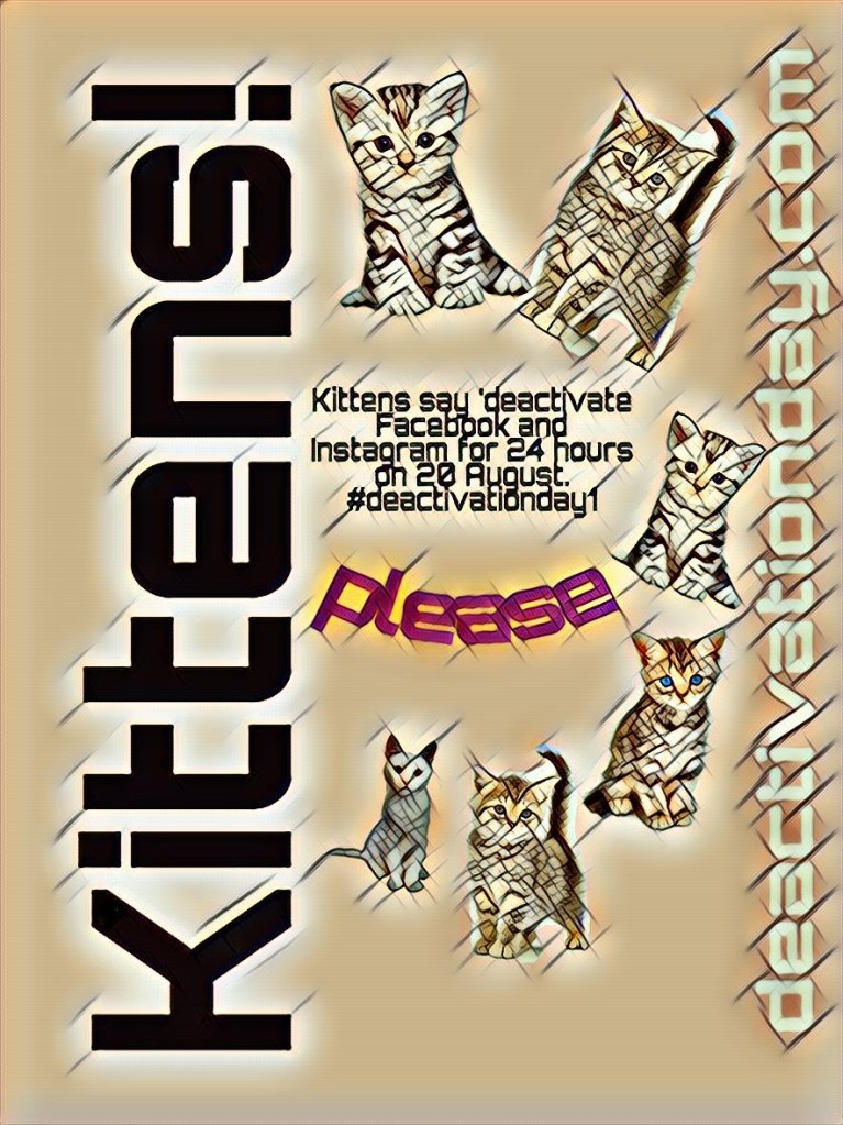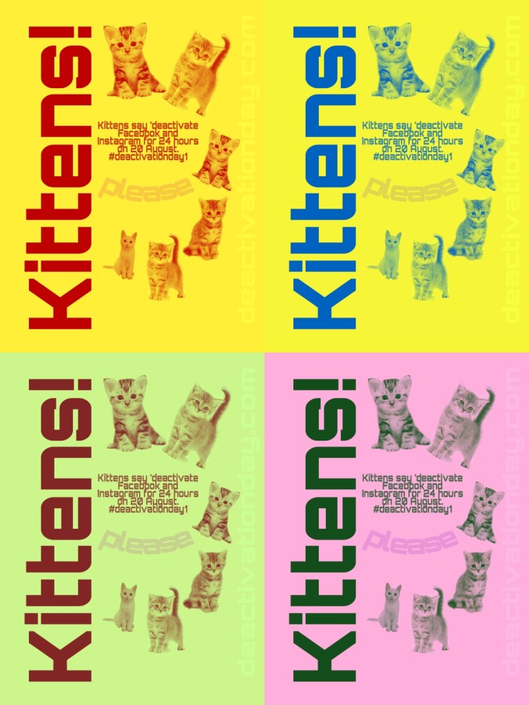 Deactivationday was a short lived attempt encourage people to deactivate Facebook and Instagram for 24 hours once month as a protest. The protest was about their failure to deal with racism, sexism, their censorship of art and their dominance. Sadly while seeming very popular among friends, depending on people actively sharing the information, it didn’t sustain itself.