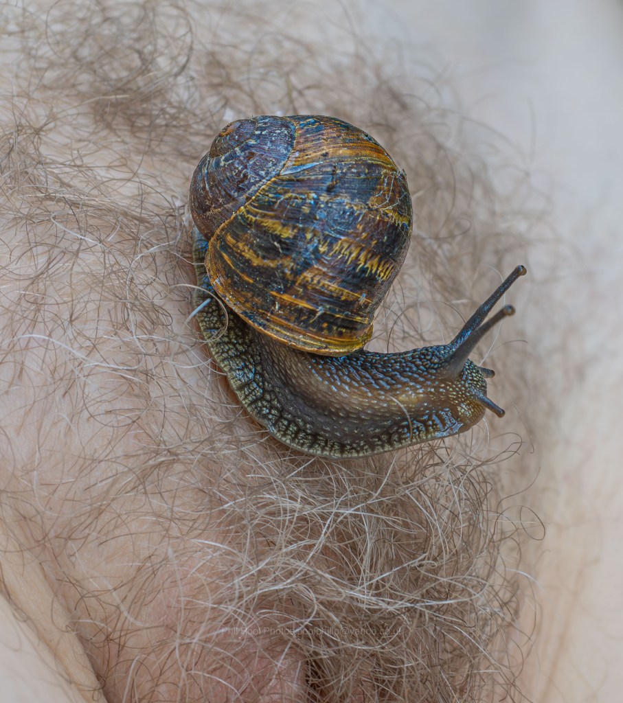 To see them released and heading off into the undergrowth afterwards was a joy. And I feel intimately acquainted with these fascinating hermaphrodites after our experiences. I’m amused to be a muse modelling molluscs.