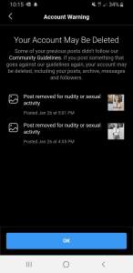 Facebook and Instagram will also ban you for posting images that appear to be against its rules even if they are not – it blocked me 4 times simply for posting links to this website for an image that it added with the link. Being blocked, if the appeal isn’t successful means being locked out of contact with friends, with employment opportunities, with local community information and so on. There is no way to say on what grounds one is making an appeal nor easy way to contact either organisation.