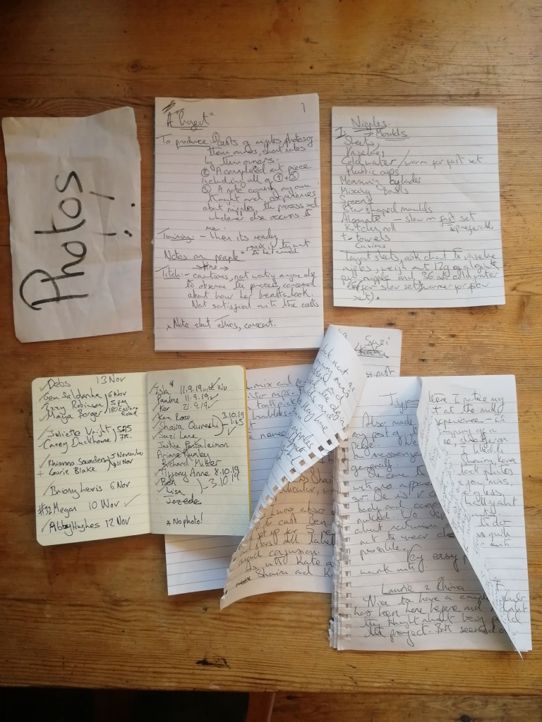 If anyone would like to do something similar here is the list of ingredients and some instructions. If you’d like your nipples cast please contact me –
