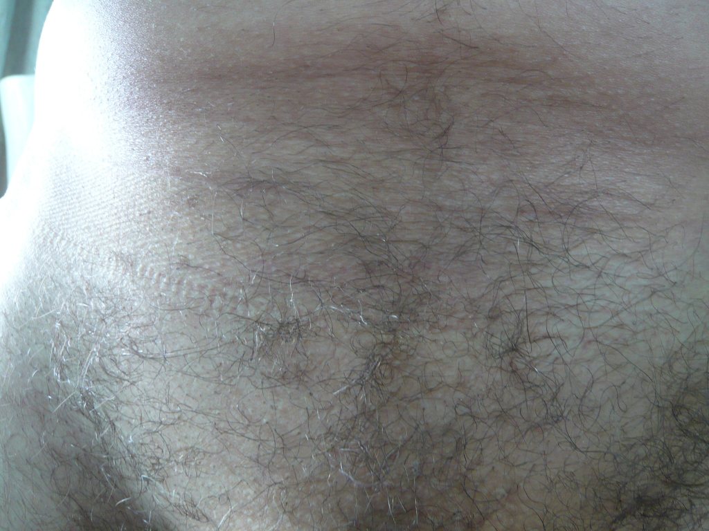 Partly, when I started, I just wanted to photograph skin, random areas of skin from parts of my body that might not even be that easy to identify – I wanted them to be, as this is, quite abstract. Its not as good as I want it to be though, not as high a resolution as I want. Just a part of me, just as my fairly sparse public hair starts.